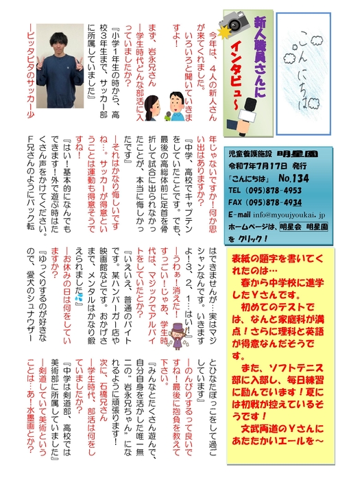 私たち児童養護施設明星園では、共に働く仲間を募集しております。様々な事情により家庭での養育が困難な児童が入所している児童養護施設において、養護児童に対し、本当の親のように慈しみ、温かい視線で見守り続けている施設です。私たちとともに、子どもたちを慈しみ、成長を温かく見守りませんか?